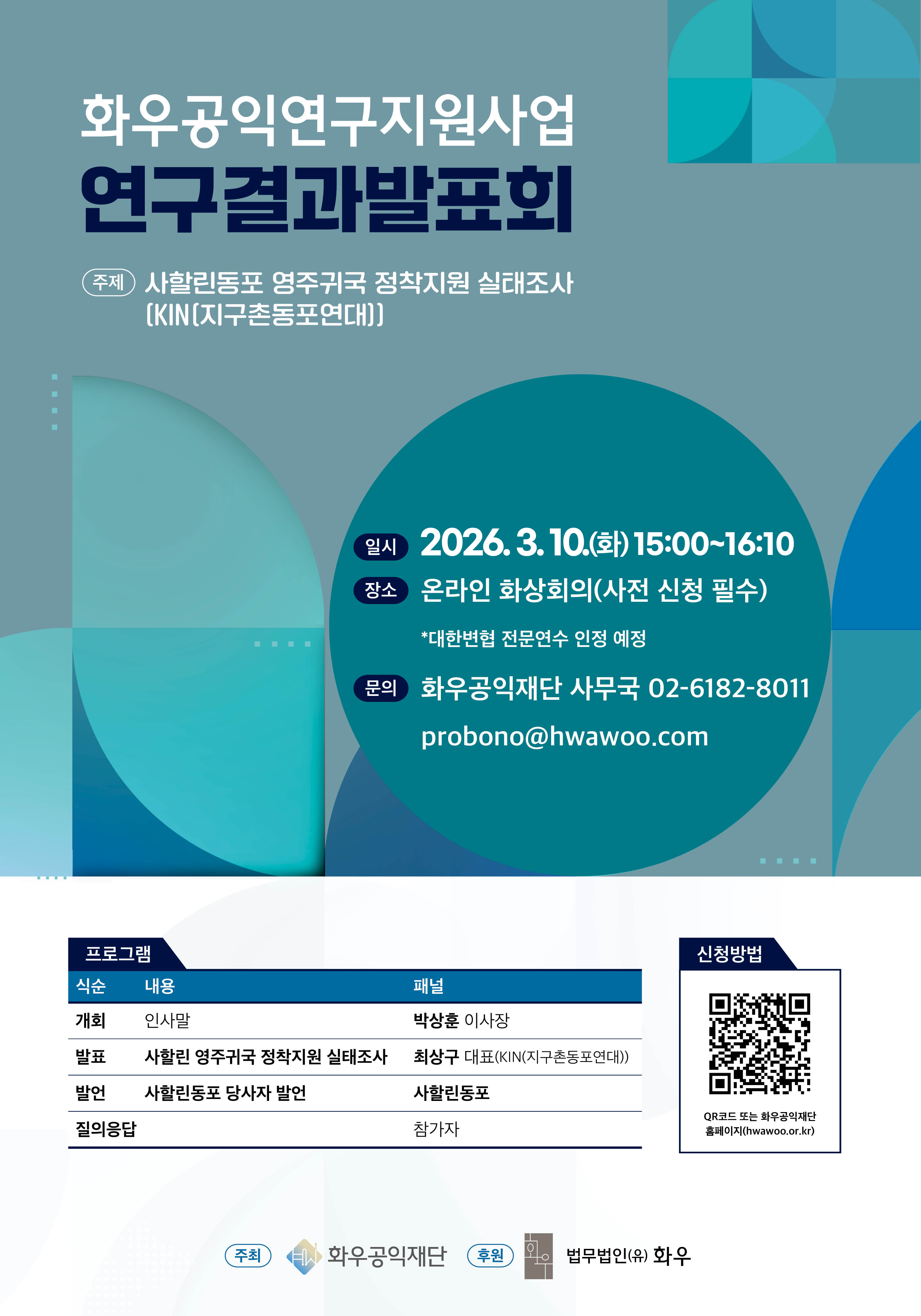 화우공익재단은 매년 공익연구를 지원하고 있습니다.